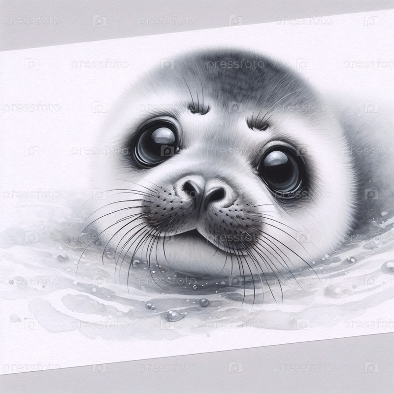Cute Seal Pup акварельный арт-принт, Ai A generated image