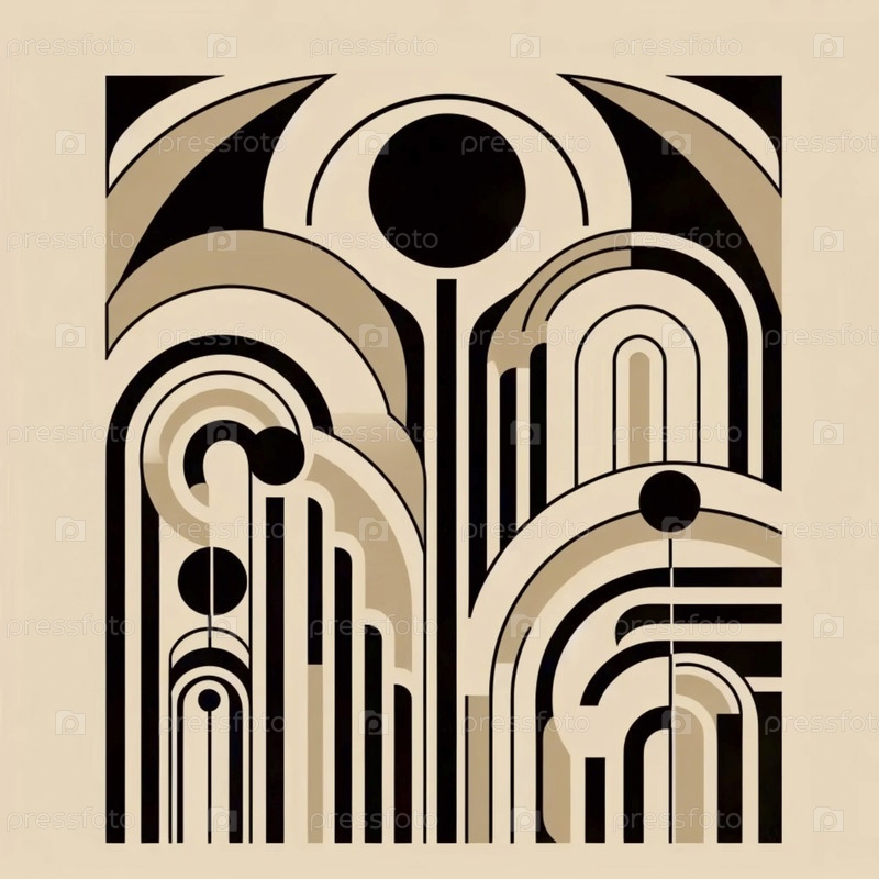 Нейтральная бохо-геометрическая печать с арками, Ai generated image