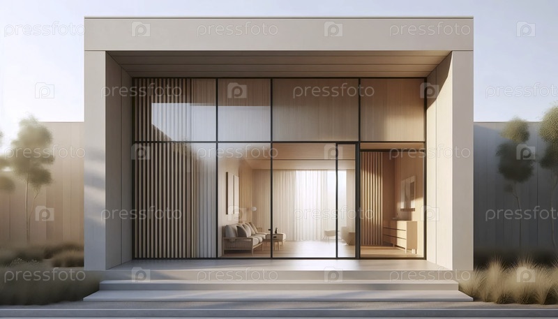 Нейтральный фотоотпечаток современного дома середины века, Ai generated image