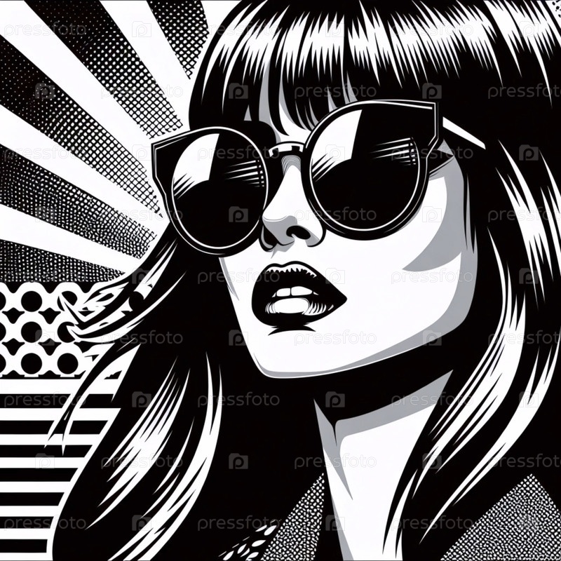 Винтажный портрет солнцезащитных очков поп-арта, Ai generated image