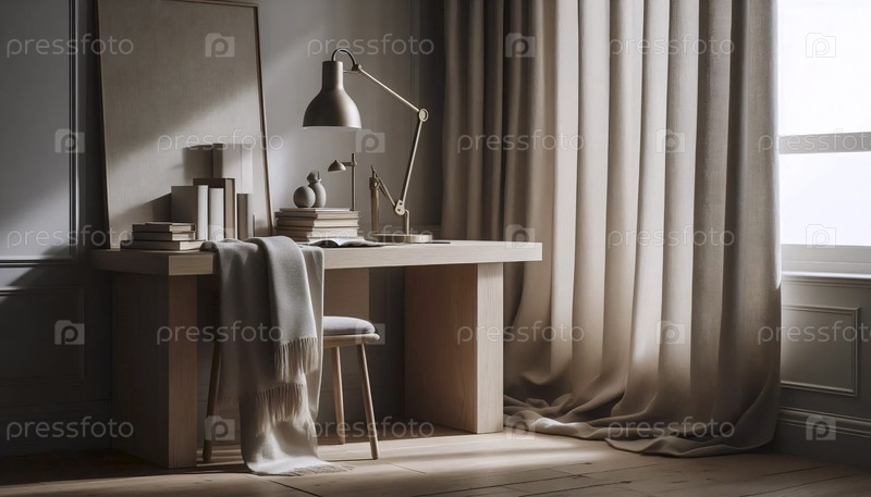 Элегантный нейтральный уголок домашнего офиса, Ai generated image