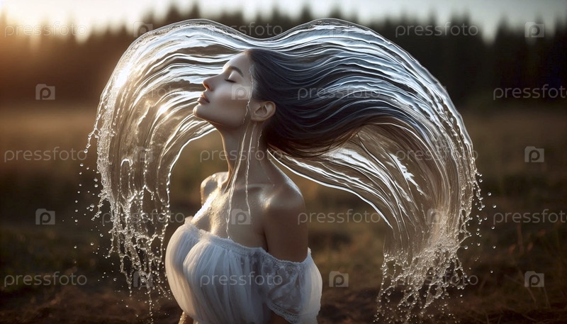 Женщина с волосами текучей воды, Ai создал изображение