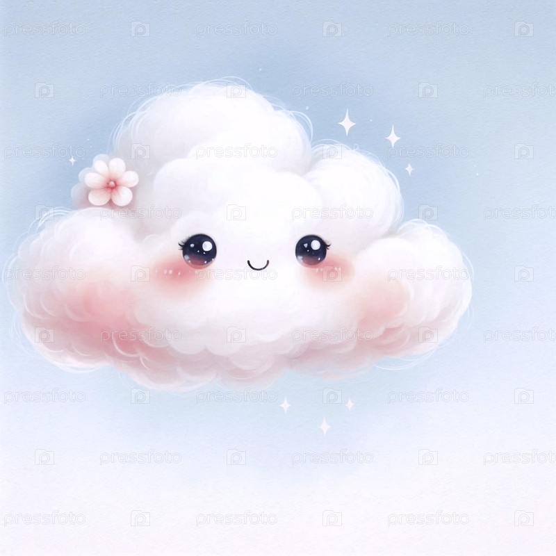Shy Cloud акварельный арт-принт, Ай создал изображение A