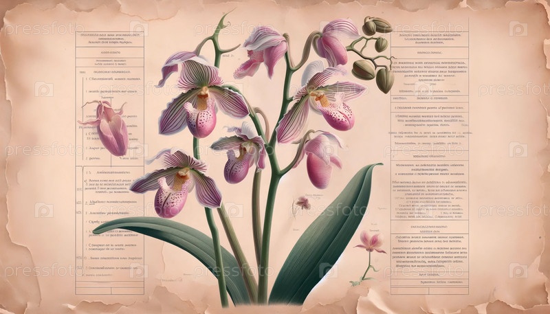 Орхидея в технике ботанической иллюстрации, Ai generated image