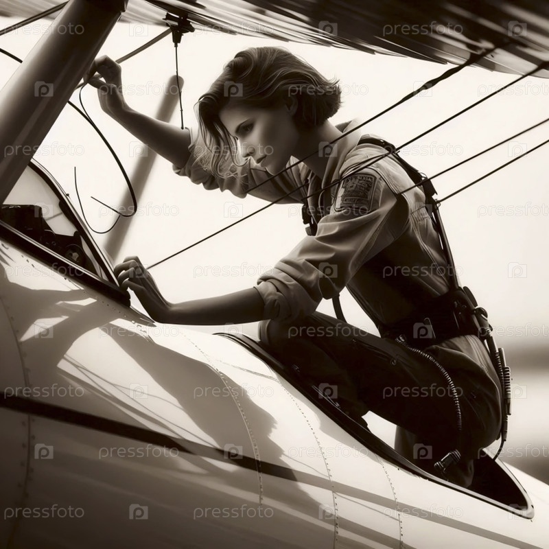 Профильный снимок пилота, проверяющего самолет, Ai создал изображение