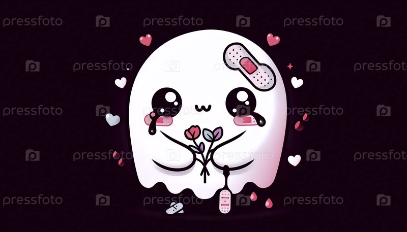 Ями Кавайи иллюстрация грустного пастельного призрака, Ai generated image