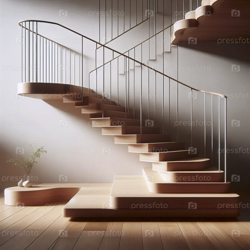 Архитектурный подробный снимок современной лестницы середины века, Ai generated image