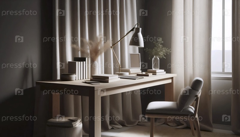 Элегантный нейтральный уголок домашнего офиса, Ai generated image