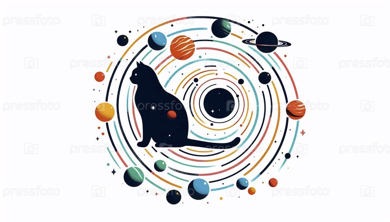 Минималистическая солнечная система с кошачьим силуэтом, Ai generated image