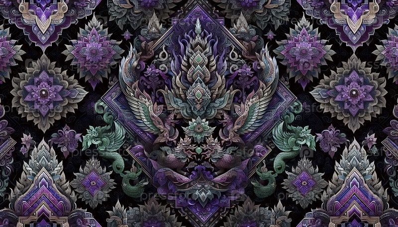 Тайские шелковые узоры Бесшовный дизайн, Ai generated image
