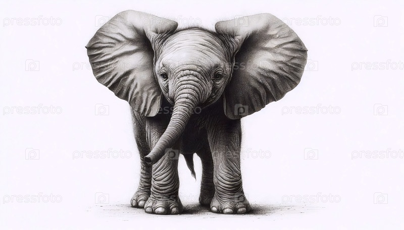 чернильный рисунок детского слона