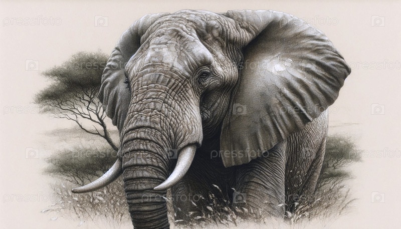 A majestic elephant ink drawing art print, Ai generated image Изображение было создано Ай