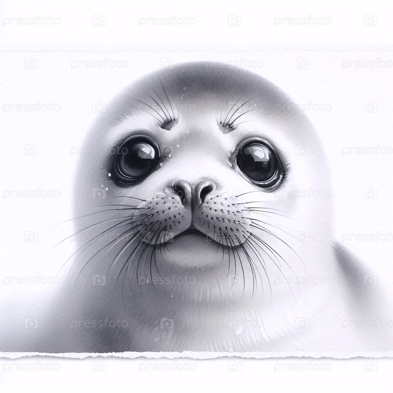 Cute Seal Pup акварельный арт-принт, Ai A generated image