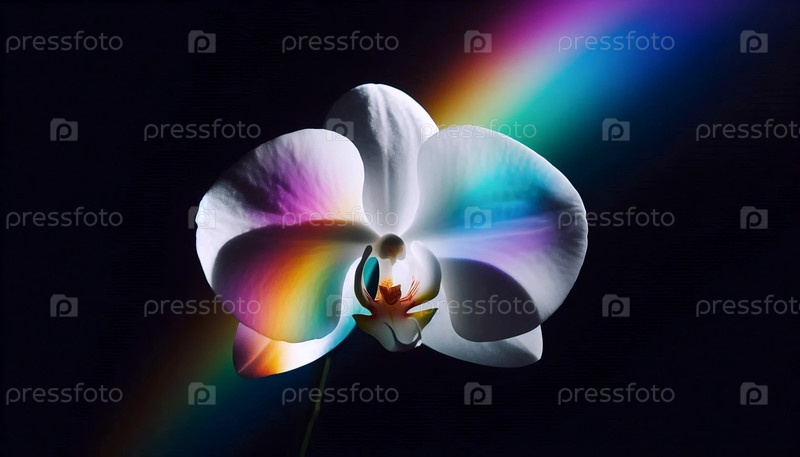 Орхидея с радужным освещением, Ai generated image