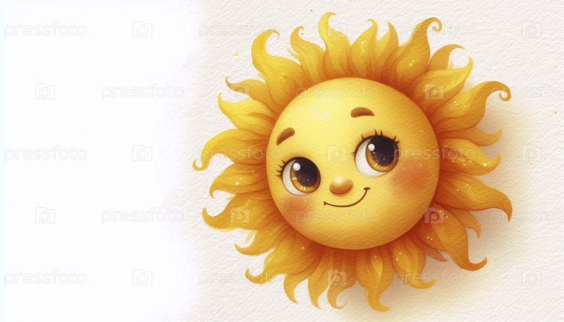 Curious Sun акварельный художественный печат, Ai generated image A