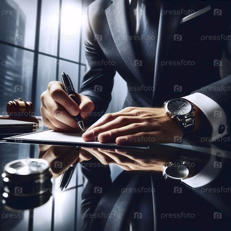 Уверенный в себе предприниматель подписывает крупный контракт, сосредоточившись на решающей руке и ручке