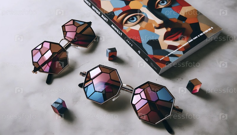 Геометрические шестиугольные солнцезащитные очки flatlay, Ai generated image