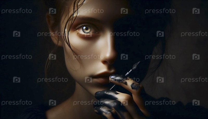 Трехчетверточный портрет, освещенный капризным классическим освещением Рембрандта, Ai generated image