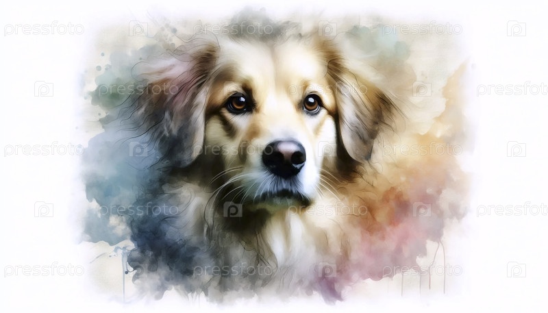 Цифровой акварельный портрет собаки из фото, Ai generated image