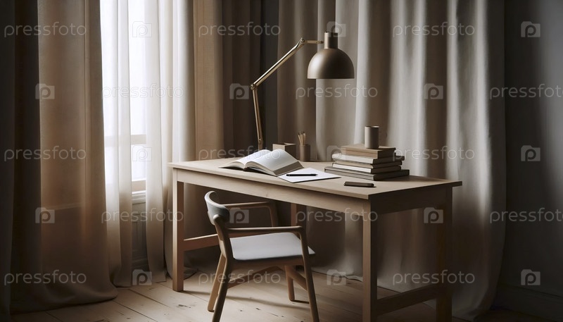 Элегантный нейтральный уголок домашнего офиса, Ai generated image