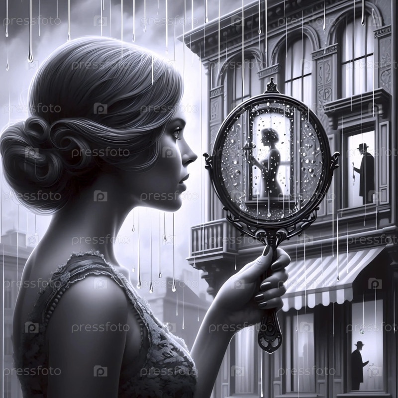 Винтажный дождливый зеркальный искусство, Ai generated image