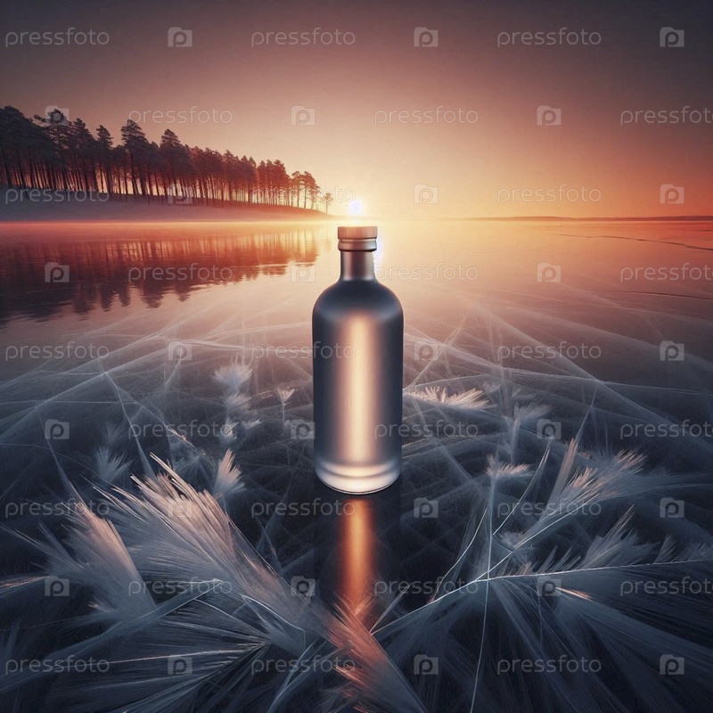Минималистский цилиндрический макет бутылки, стоящей прямо на идеально прозрачном льду, Ай создал изображение
