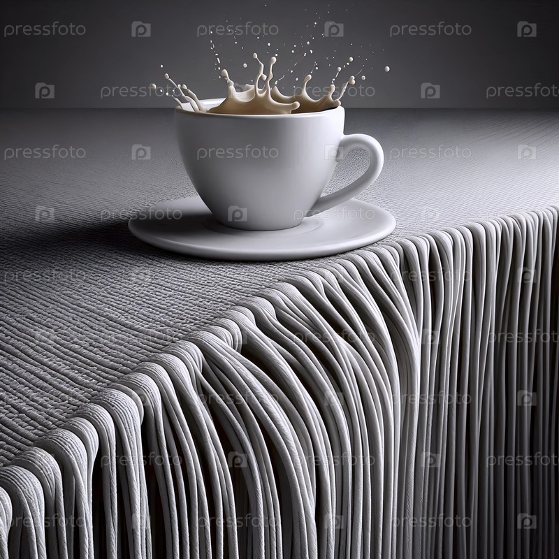 Ближайший план в точке, где ткань очищается от стола, посуда неподвижна, Ai создал изображение