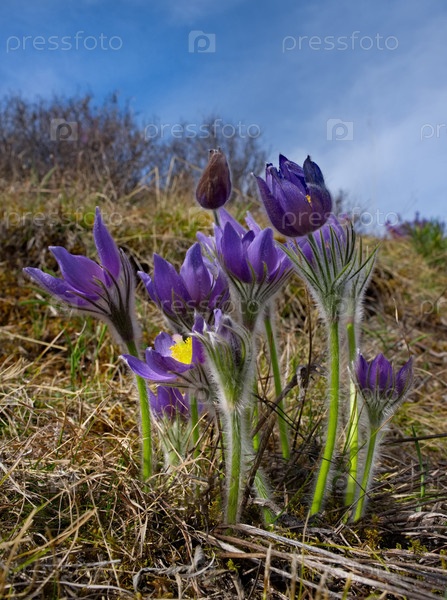 Россия. Юг Западной Сибири. Прострел раскрытый (Сон-трава) - первые весенние цветы на каменистых склонах горного Алтая