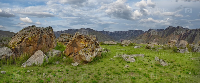 Россия. Юг Западной Сибири. Горный Алтай. Удивительные каменные россыпи в долине реки Катунь вдоль Чуйского тракта в районе поселка Иня