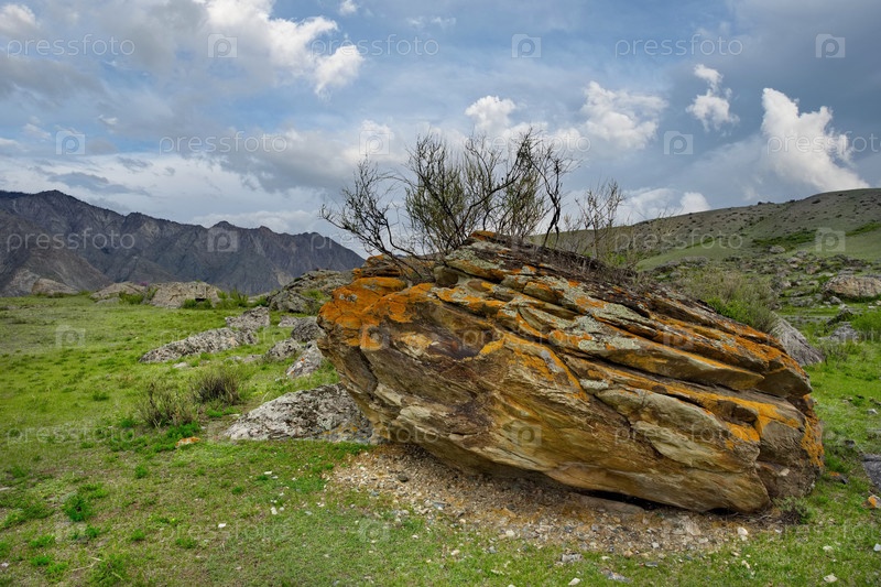 Россия. Юг Западной Сибири. Горный Алтай. Удивительные каменные россыпи в долине реки Катунь вдоль Чуйского тракта в районе поселка Иня