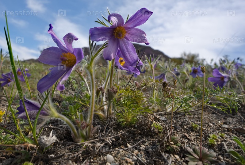 Россия. Юг Западной Сибири. Прострел раскрытый (Сон-трава) - первые весенние цветы на каменистых склонах горного Алтая