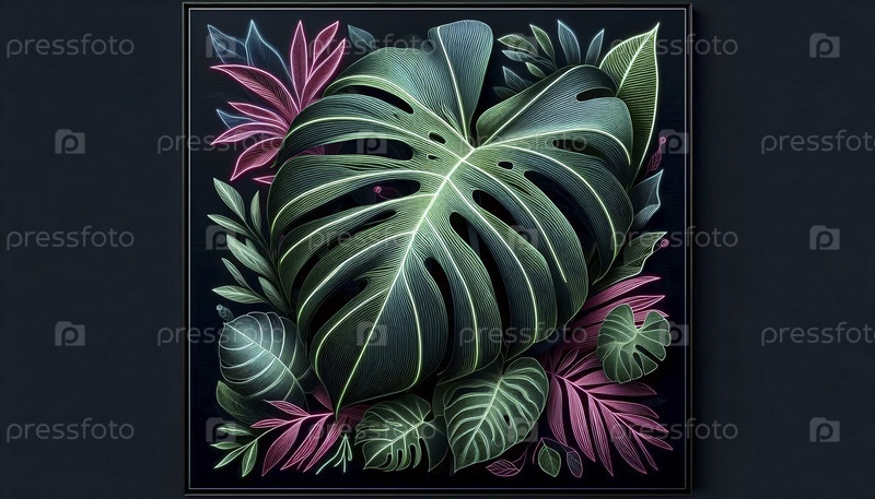 Цифровой неоновый ботанический художественный плакат, Ai generated image