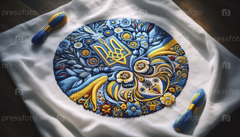 Украинский флаг в традиционном искусстве вышивки, Ai generated image
