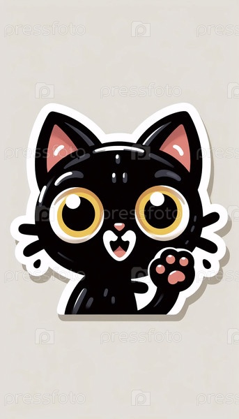 Милый мультфильм черная кошка с желтыми глазами наклейка, Ai generated image