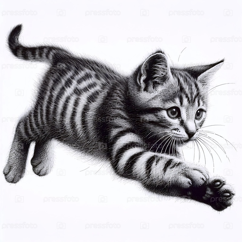 Качающийся котёнок чернила рисование художественная печать, Ai generated image