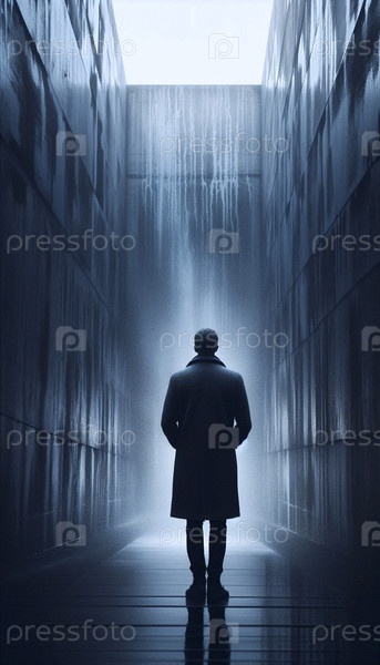 Силуэт в утреннем тумане на абстрактной городской стене, Ай создал изображение