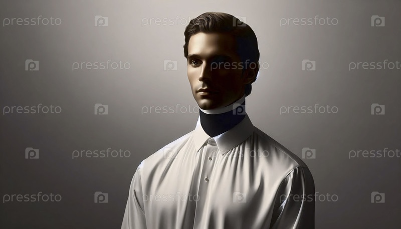 Портрет, где человек смотрит вперед, ошейник теней - единственный драматический элемент, Ай создал изображение