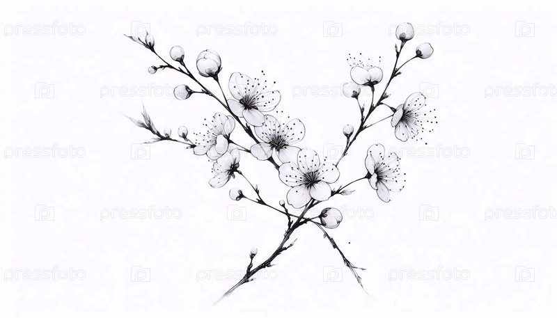 Пара вишневых цветов чернила рисование художественная печать, Ай создал изображение A