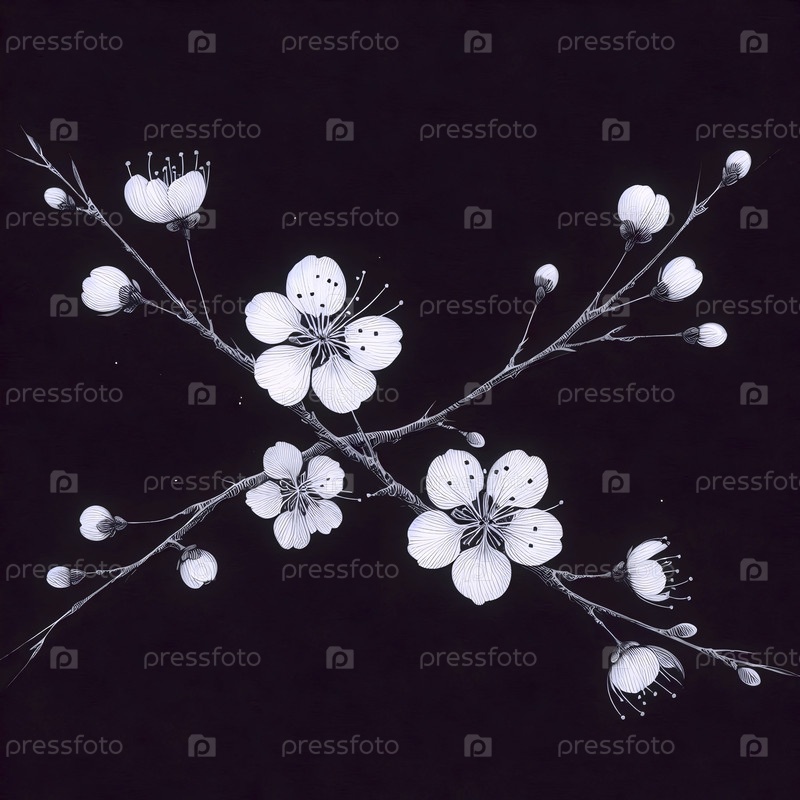 A Pair of Cherry Blossoms чернила рисунок художественного произведения печать на черном, Ai generated image