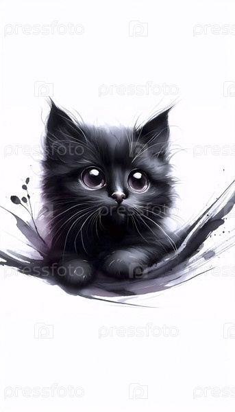Минимализм Красивый черный кошачий принт, Ai generated image A
