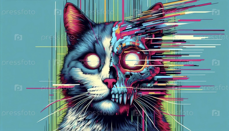 Портрет киборговой кошки, созданный с помощью glitch-art, Ai generated image