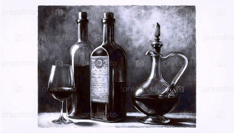 рисунок бутылки с вином и маслом