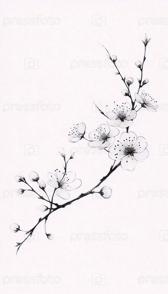 Пара вишневых цветов чернила рисование художественная печать, Ай создал изображение A