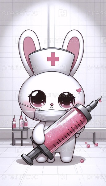 Подробнее Ями Кавайи персонаж медсестры кролик, Ai generated image
