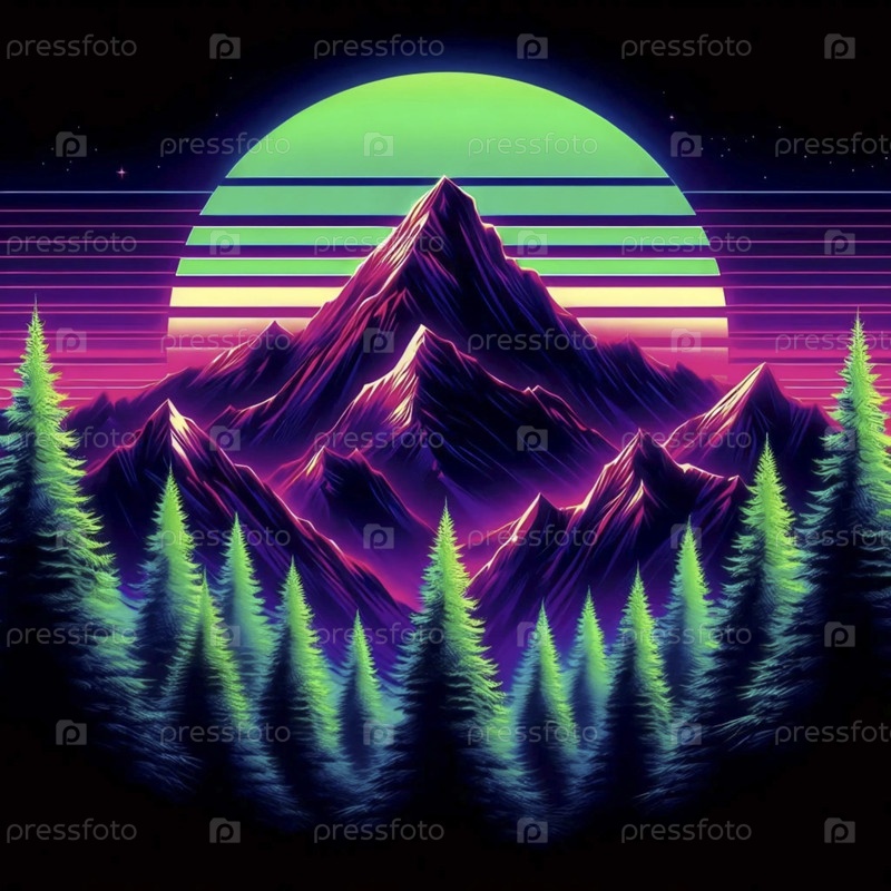 Постер цифровых неонных пейзажных произведений искусства, Ai generated image A