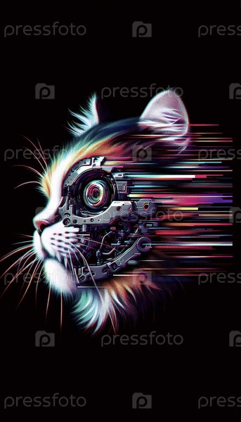 Портрет киборговой кошки, созданный с помощью glitch-art, Ai generated image