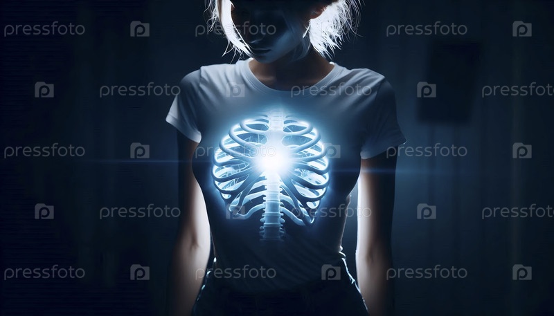 Женщина со светящимся реакторным сердцем, Ai generated image