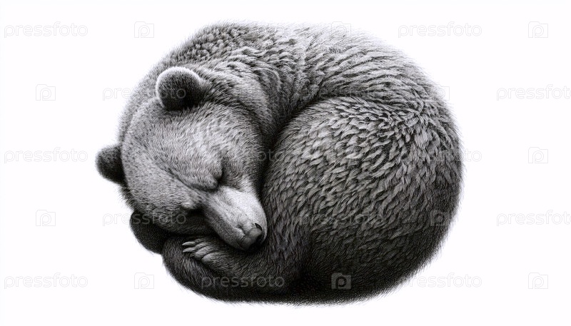 спящий медвежонок чернильный рисунок