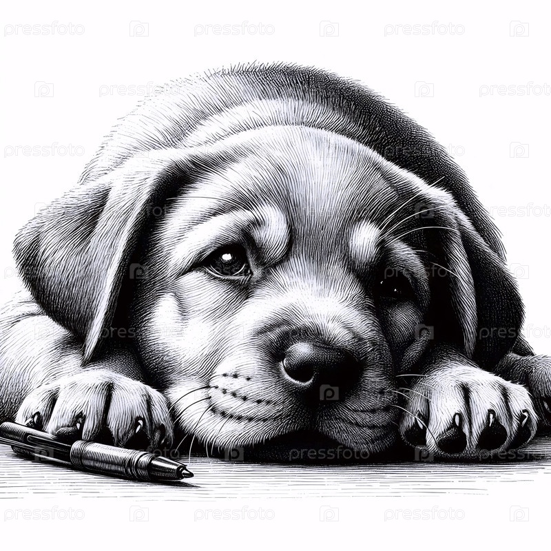 Спящее щенко чернила рисование A art print, Ai generated image