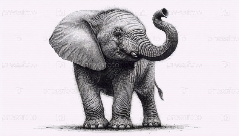 слон с поднятым туловищем чернила рисунок